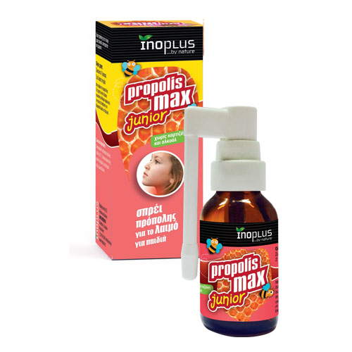 Το Propolis Max Junior Throat Spray είναι μια πρωτοποριακή φόρμουλα βασισμένη σε πρόπολη, η οποία βοηθάει σε κρυολογήματα, πονόλαιμο, χρόνια φαρυγγίτιδα, άφθες, καταπολεμά τις διάφορες λοιμώξεις και την κακοσμία του στόματος και γενικότερα στην υγιεινή της στοματικής κοιλότητας. Η πρόπολη γενικότερα, χρησιμοποιείται για την ενίσχυση του ανοσοποιητικού συστήματος αφού παίζει το ρόλο του φυσικού «αντιβιοτικού».