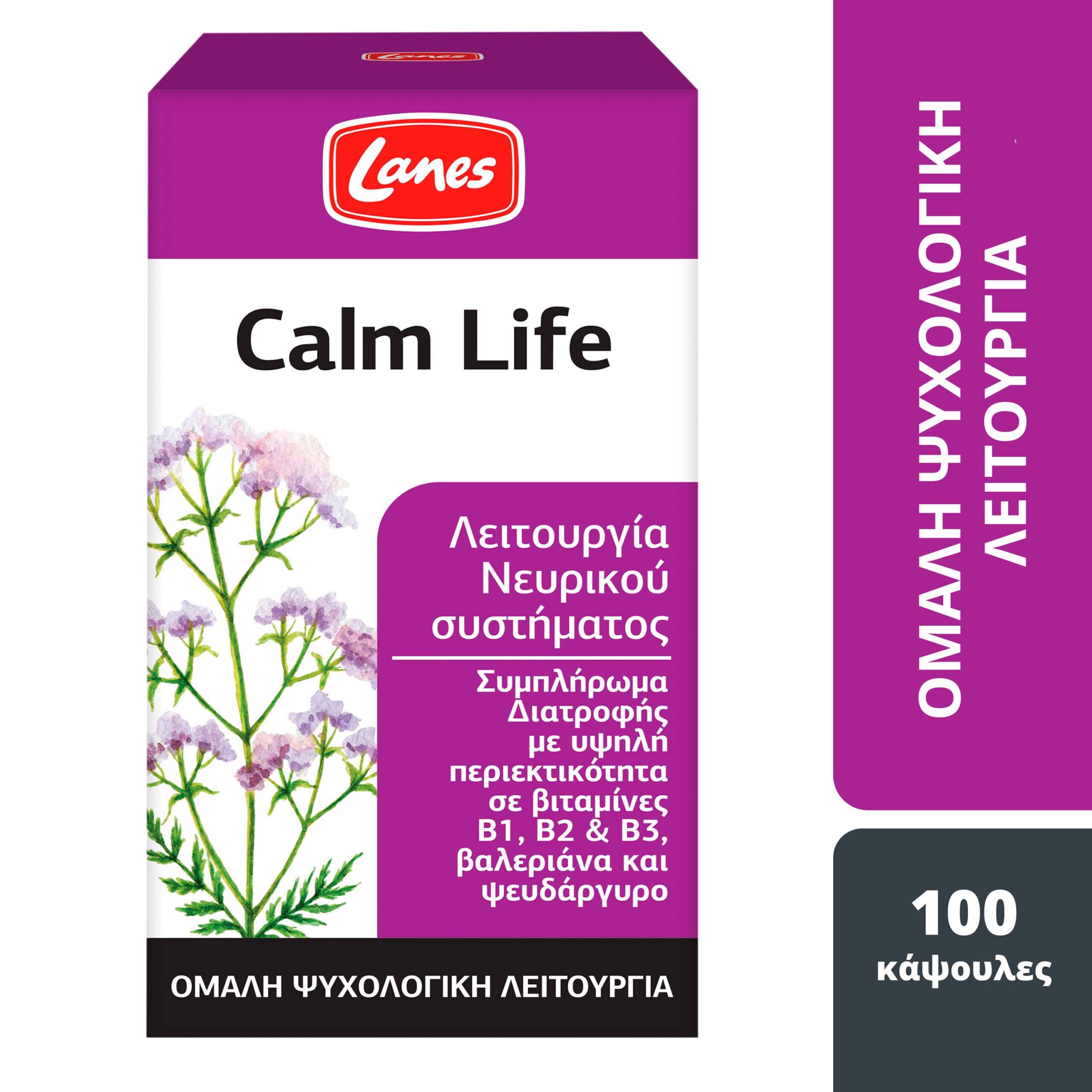 Lanes Calm Life – Συμπλήρωμα διατροφής με Βιταμίνες Β1, Β2, Β3, βαλεριάνα & ψευδάργυρο για φυσιολική λετουργία του νευρικού συστήματος – 100 κάψουλες